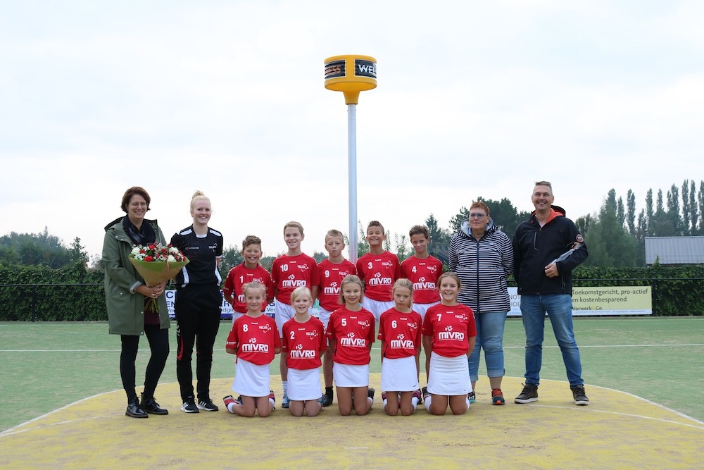 Natuurlijk wilde het hele team inclusief de coaches Martine en Rachel met de sponsor, Marcel Vroegh en zijn vrouw Ilona, op de foto.