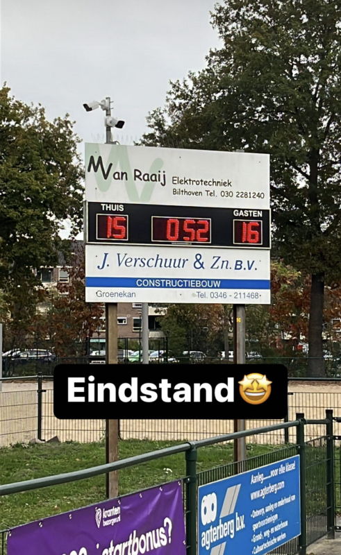 Om 15:30 uur was het de beurt aan het vlaggenschip van Telstar. De openingsfase was duidelijk voor de Hoevelakers maar zoals al vaker dit veldseizoen kwam de tegenstander terug van de achterstand. De thuisploeg nam het initiatief in de score over en wist voor rust uit te lopen naar een 7-5 stand. Vlak voor het rustsignaal maakte Telstar de aansluitingstreffer.