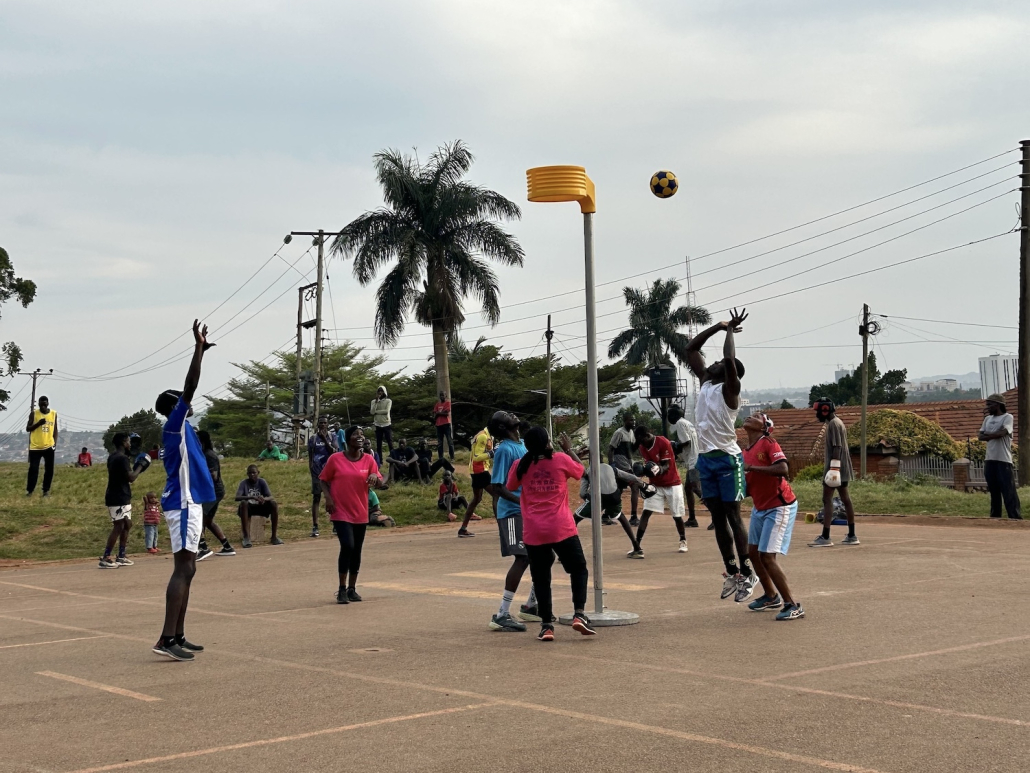 Jazeker! Wij zijn door iemand van de IKF Africa uitgenodigd om langs te gaan bij een community in Kampala waar ze korfballen. De community bestaat uit verschillende mensen uit de gemeenschap (jong en oud) die één keer in de week samen komen om met elkaar te korfballen. Er worden geen wedstrijden gespeeld omdat ze nergens anders in de omgeving korfballen. Een training van de community bestaat vooral uit onderlinge partijen. Er werd mij gevraagd of ik wat oefeningen wilde geven in de training. Dat was wel een uitdaging; 14 mensen en één paal. Maar goed, improviseren kun je leren.