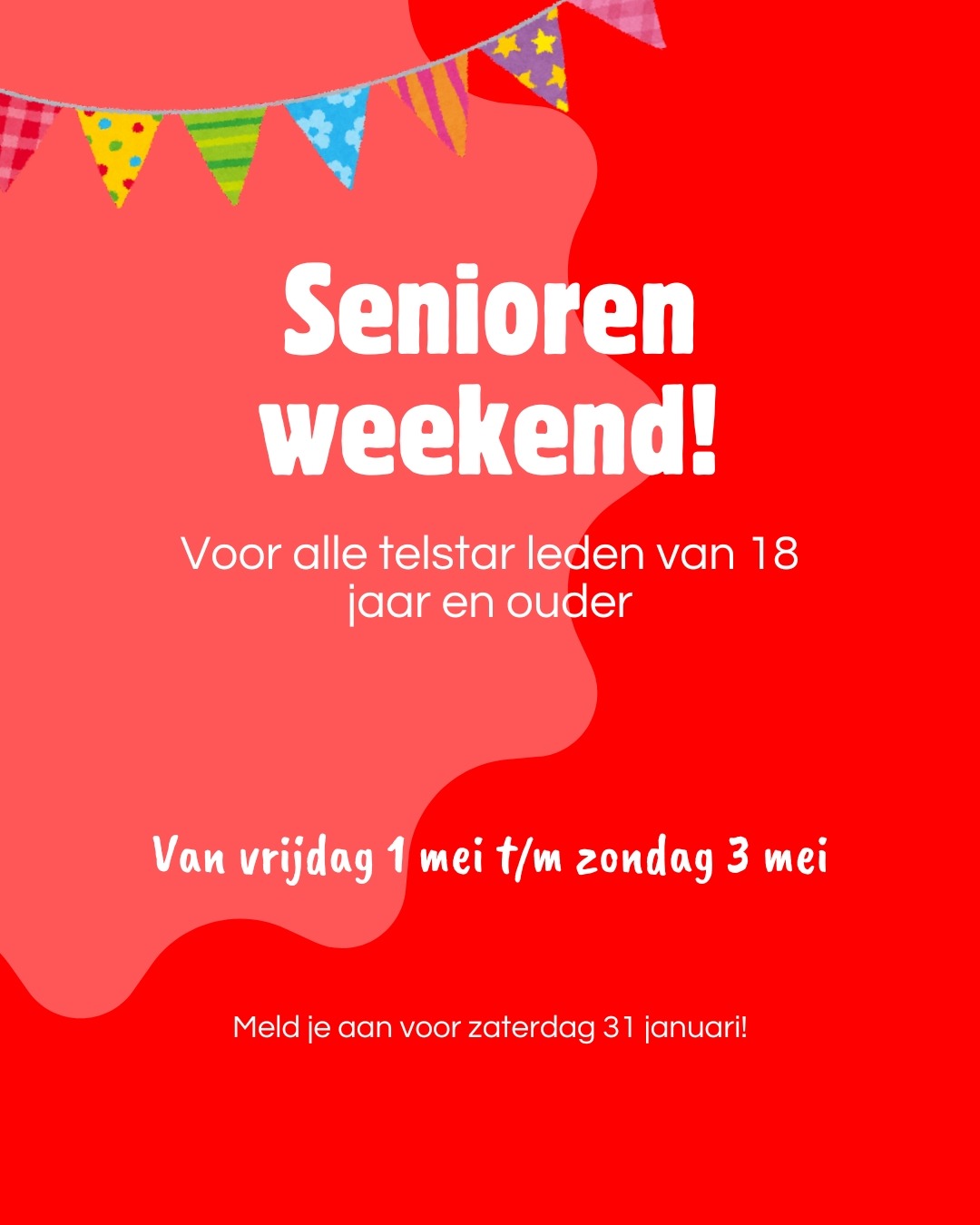 Van vrijdag 1 mei tot en met zondag 3 mei organiseren wij een gezellig seniorenweekend voor alle Telstar-leden van 18 jaar en ouder.