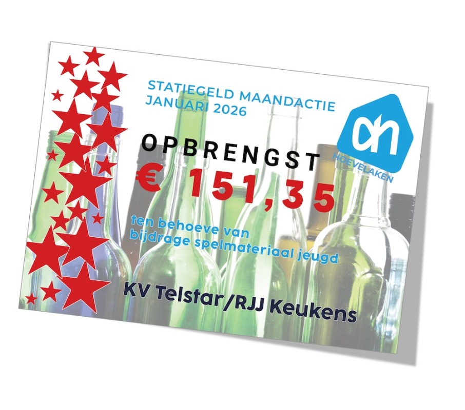 Een geweldige actie samen met Albert Heijn in Hoevelaken: Er is een mooi geldbedrag ingezameld door middel van de statiegeldactie bij het Albert Heijn-filiaal in Hoevelaken. ,,Albert Heijn Hoevelaken had ons uitgekozen voor de statiegeldbonnenactie afgelopen januari”, aldus Wout Veldhuizen van de Sponsorcommissie.